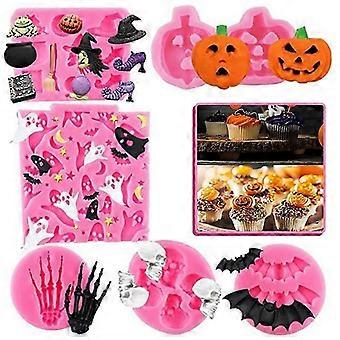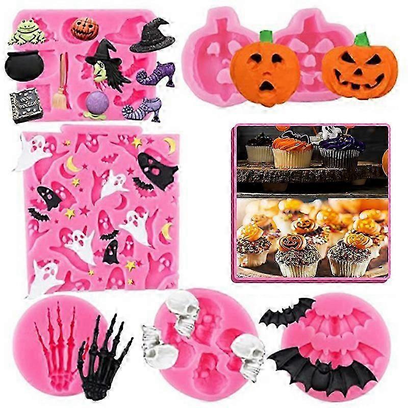 Set of 6 Halloween Silicone Stencils Skull Witch Bat Casting Die Soft Epoxy Resin Template Cake Baking Pan for DIY Craft New