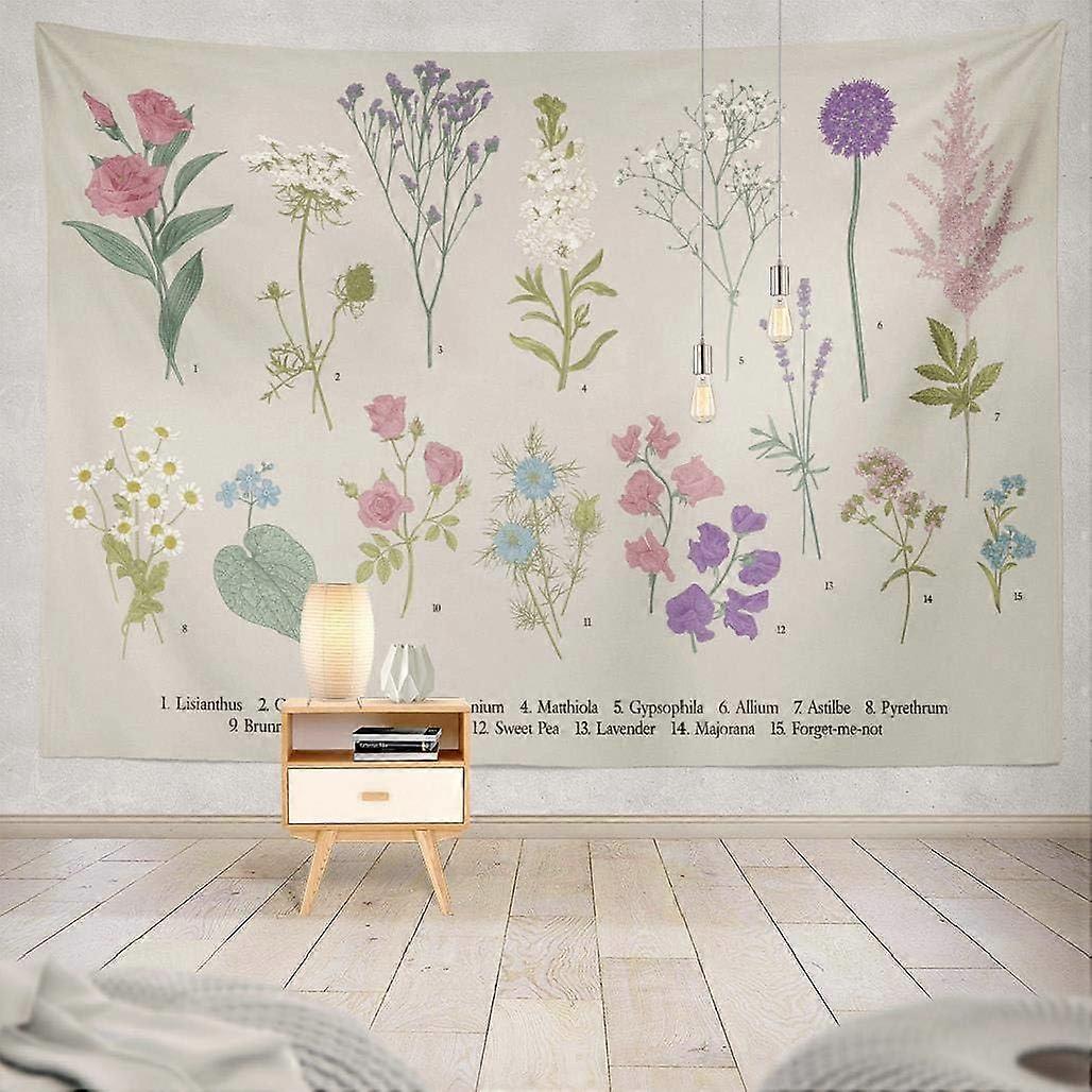 Colorful Plants Tapestry Set Summer Flowers Classical Botanical Illustration Tapestry for Home(60x80)(200x150cms)
