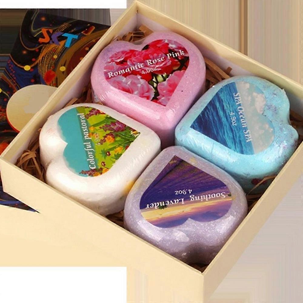 Bath Bombs Gift Set, 4pcs Heart-shaped Bath Bombs with Natural Spa Fizzies & Colorful Bubble to Moisturize