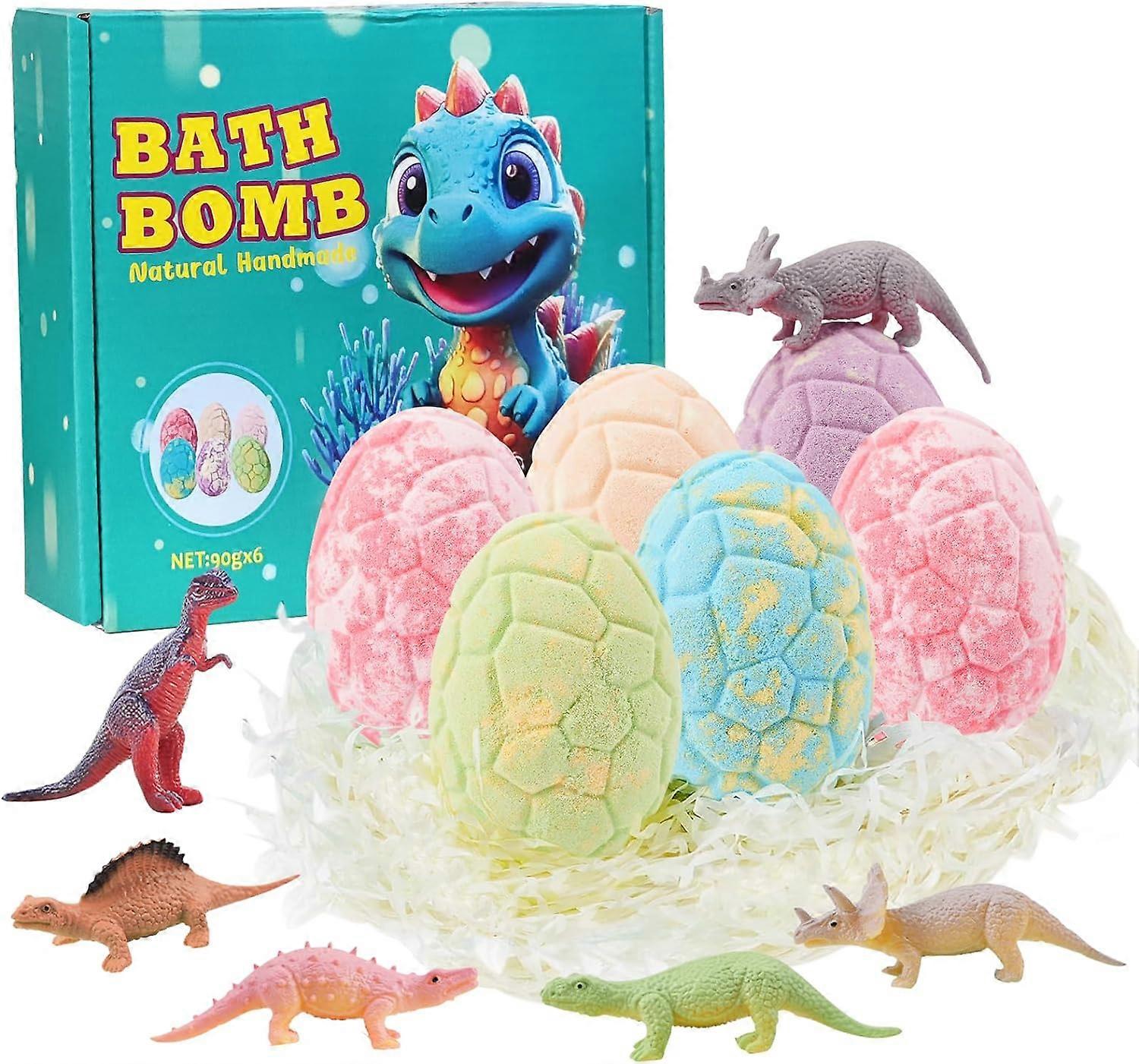 Bath Bombs Gift Set,6*Dinosaur Bath Bombs for Kids with Surprise Dinosaurs Toys Inside, Handmade Organic Natural Fizzy Kids Bath Bombs, Bubble Bath Bo