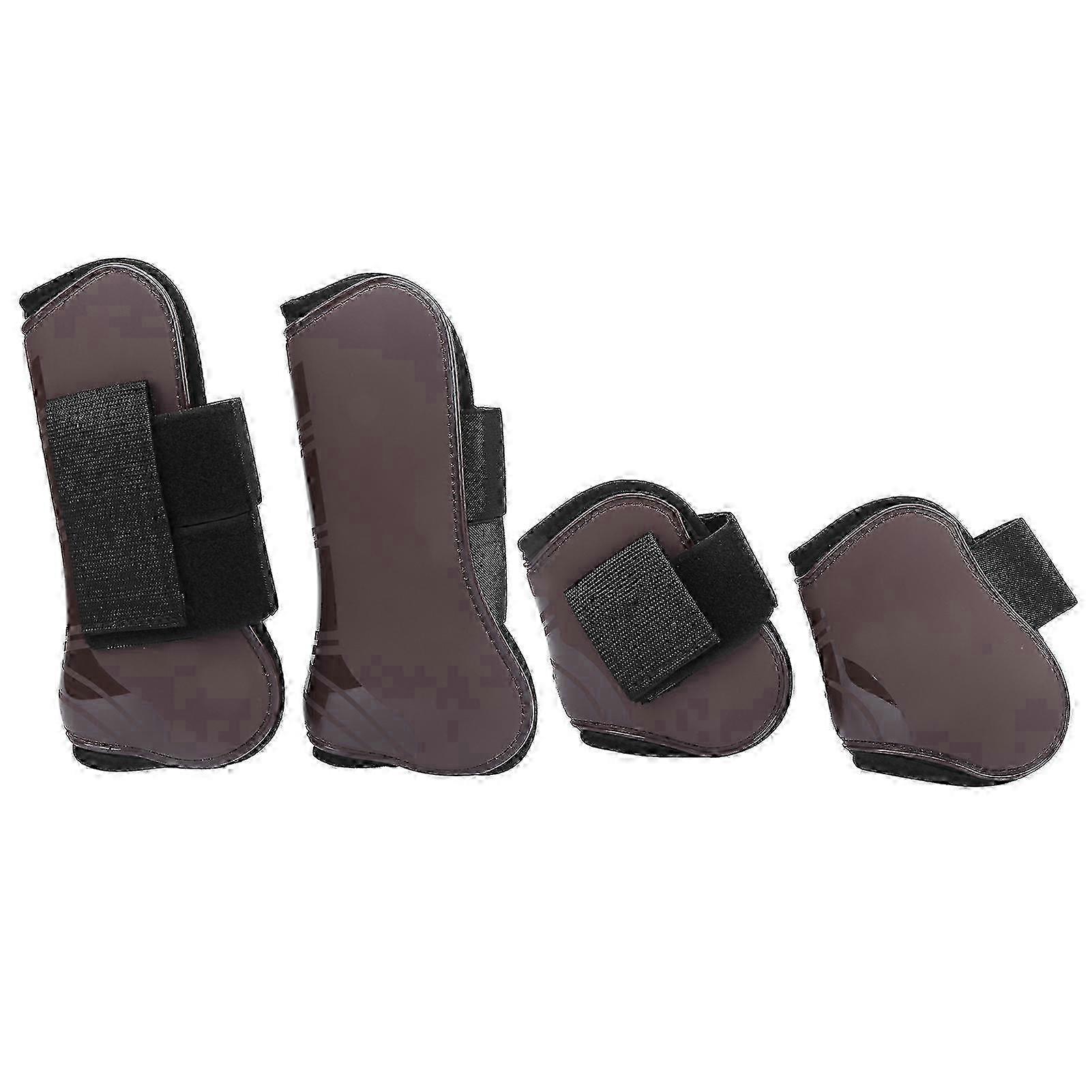 1Set Horse Tendon Boots PU Elastic Thickened Adjustable Horse Leg Protector with Nylon HookBrown M
