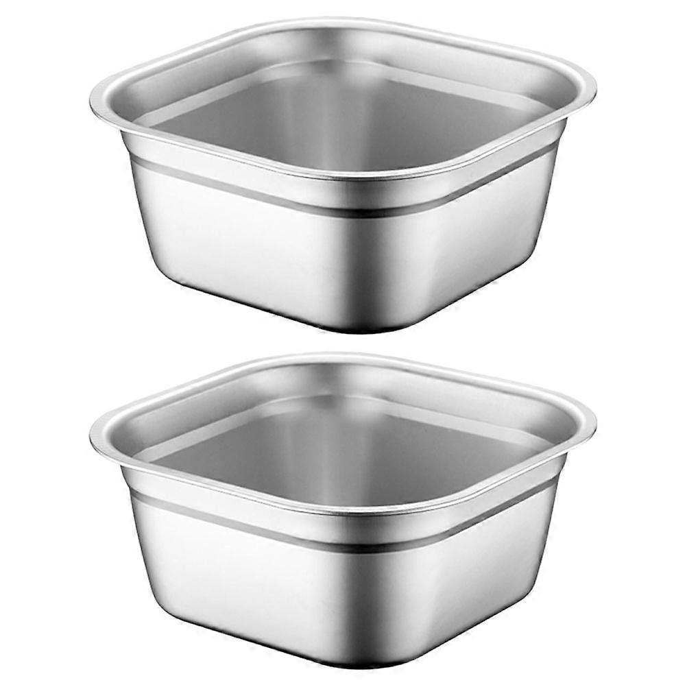 These stainless steel basins offer a good blend of functionality and style. Their deep and is ideal for a variety of kitchen tasks, from washing produce to mixing ingredients. The stainless steel material they are providing a and reliable solution for your kitchen needs. Features - Color: Silver -Material:Stainless steel - Size: 21.00X21.00X9.00cm/8.25X8.25X3.54in -Versatile function: good for use as a deep basin, vegetable washing basin, soup basin, fast food basin, and noodle basin - material: made of stainless steel, providing durability and easy maintenance -Generous capacity: the basin's size is ideal for holding a large volume of food or items -Modern design: the square shape is stylish and contemporary, enhancing your kitchen's look -Efficient storage: space saving design allows for convenient storage, keeping your kitchen neat Package list: 2pcs stainless steel square basin