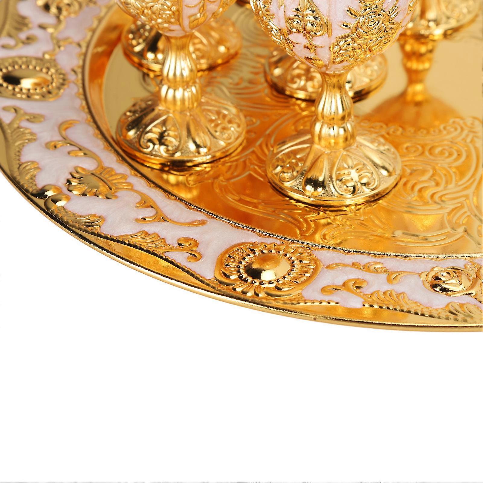 Vintage Wine Pot Set European Retro Coffee Pot Tray Kit Exquisite Carving Zinc Alloy Wine Cups for Wine Cabinets Bar Counters Gold White