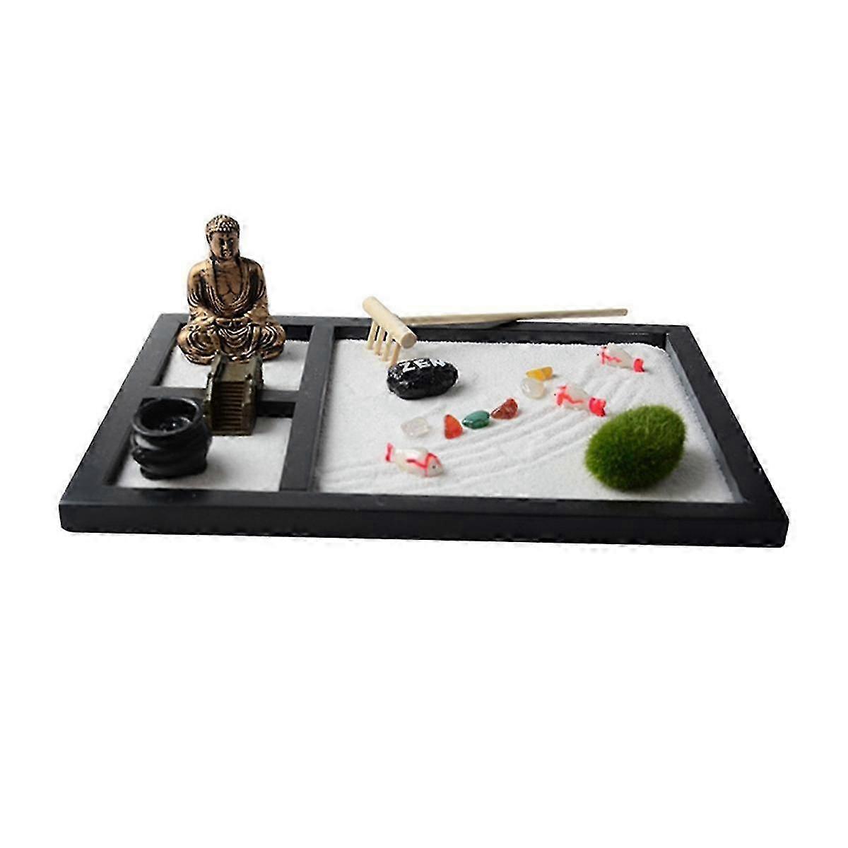 Japanese Zengarden Kit For Desk - Relaxing Sand Box Set With Accessories For Office Tabletop Decor