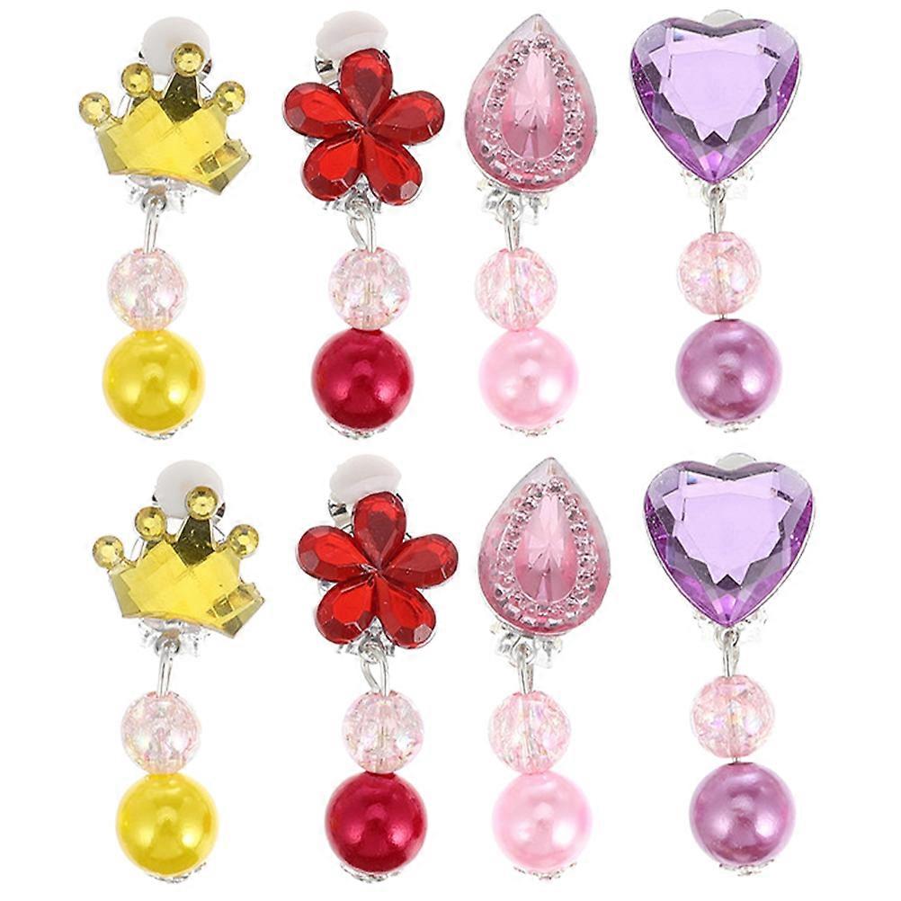Earring Jewelry For Girl Dangle Clip-On Earrings 4 Pairs Pink Color Weddings