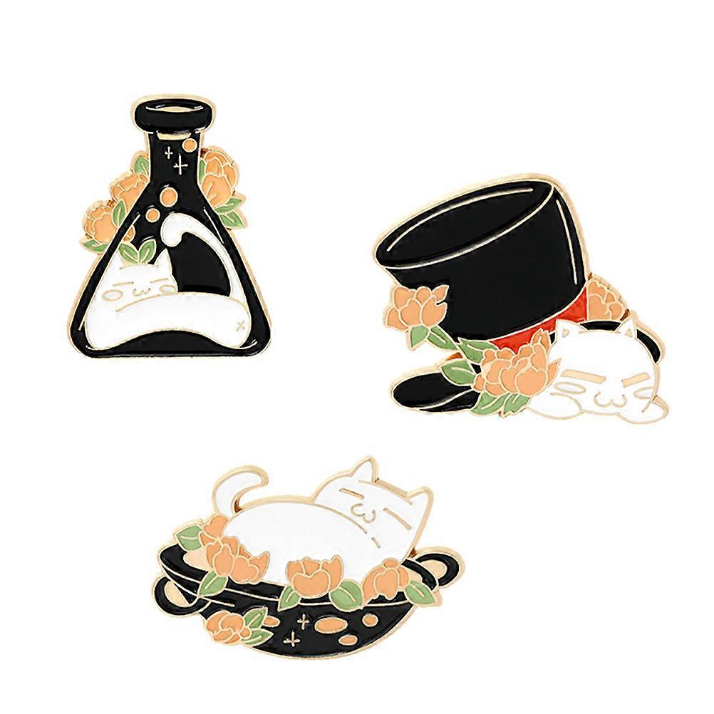 Cat Jewelry 3Pcs Enamel Cat Brooches Cartoon Design Assorted Color Perfect for Everyday Wear Clothing Decor