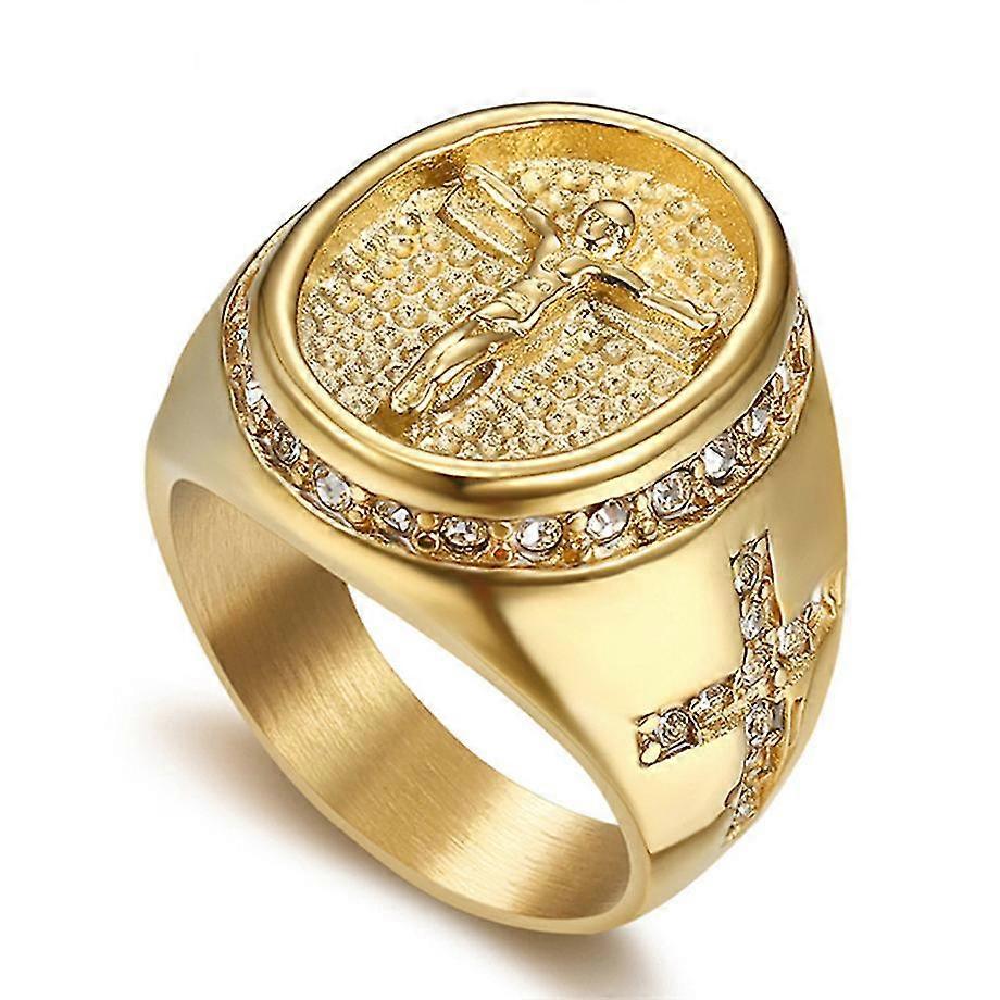 Hip Hop Jewelry Iced Out Jesus Cross Ring Gold Color Stainless Steel Rings For Men Religious Jewelry Bague Homme S