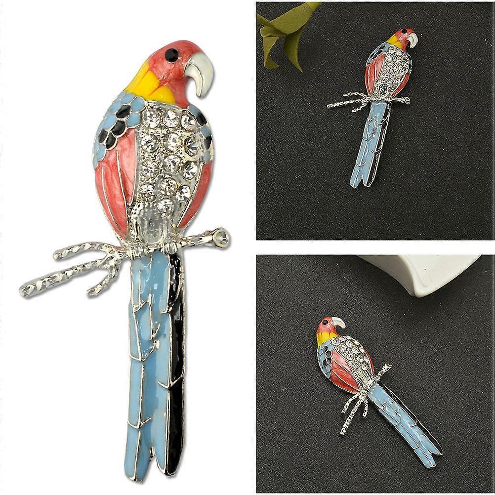 Colorful Brooch Parrot Jewelry For Women Fashion Rhinestone Imitation Pearl Red 1Set