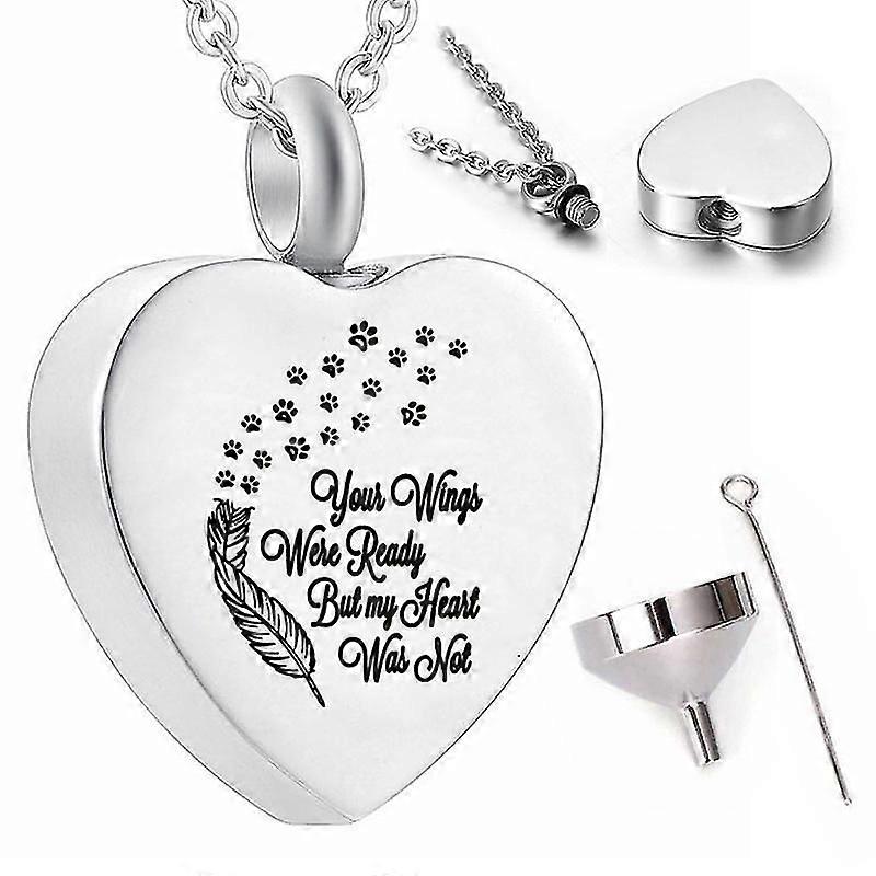 Heart Cremation Jewelry For Ashes Pendant Dog Paw Ashes Urn Necklace Pet Keepsake-you Wings Were Ready But My Heart Was Not Silver-heart