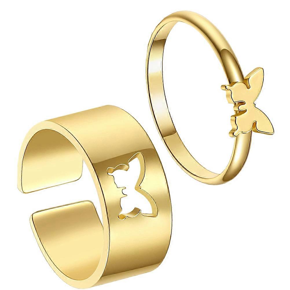 Adjustable Adjustable Finger Ring Jewelry For Women 1.7X1Cm Butterfly Shape Golden 2Pcs Set