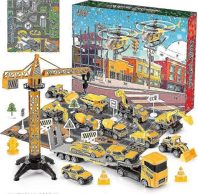 Kids Advent For Boys,alloy Construction Engineering Vehicle Toy Sets 2 Mats, Toys For 3-8 Year Old B
