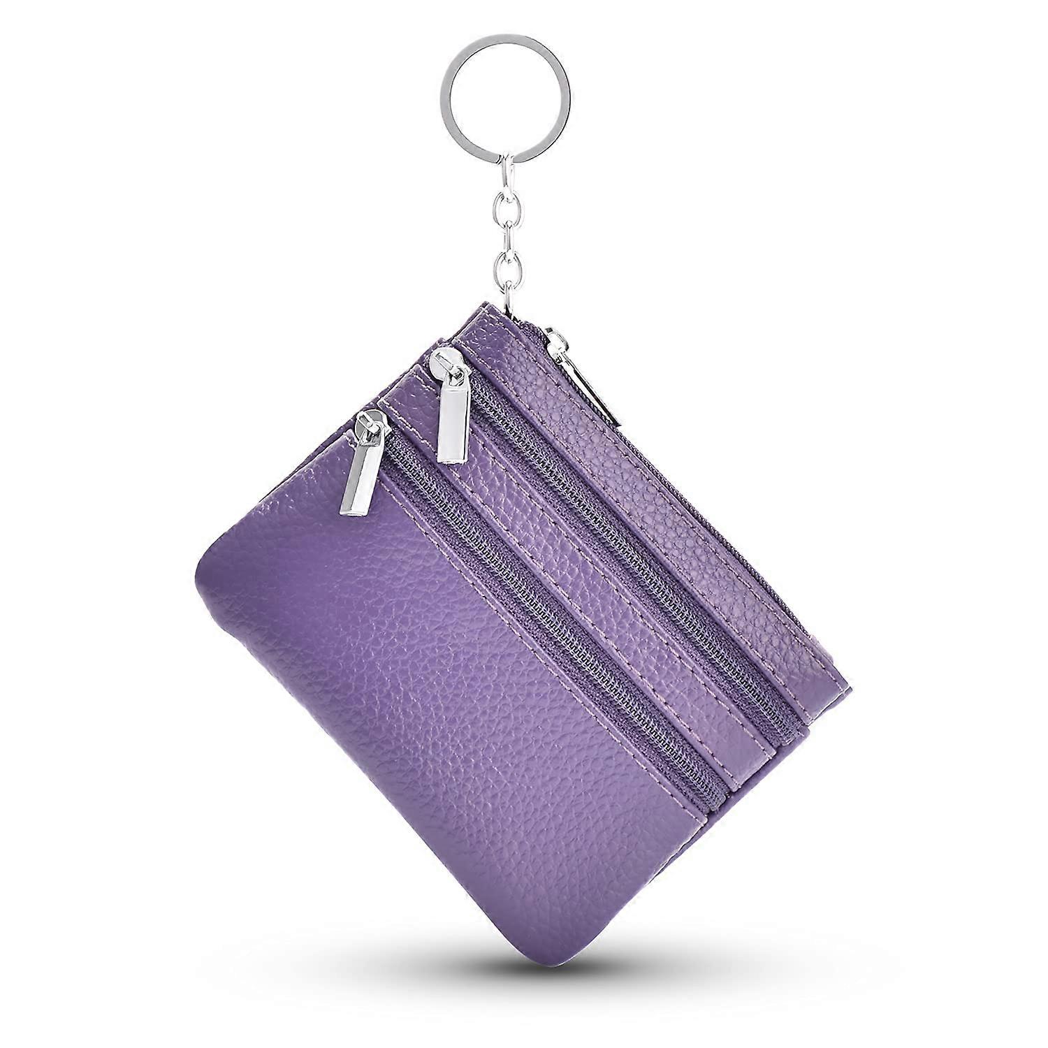 Genuine Leather Coin Purses Mini Pouch Change WalletRing and Zipper Mini Cash Wallet,Purple