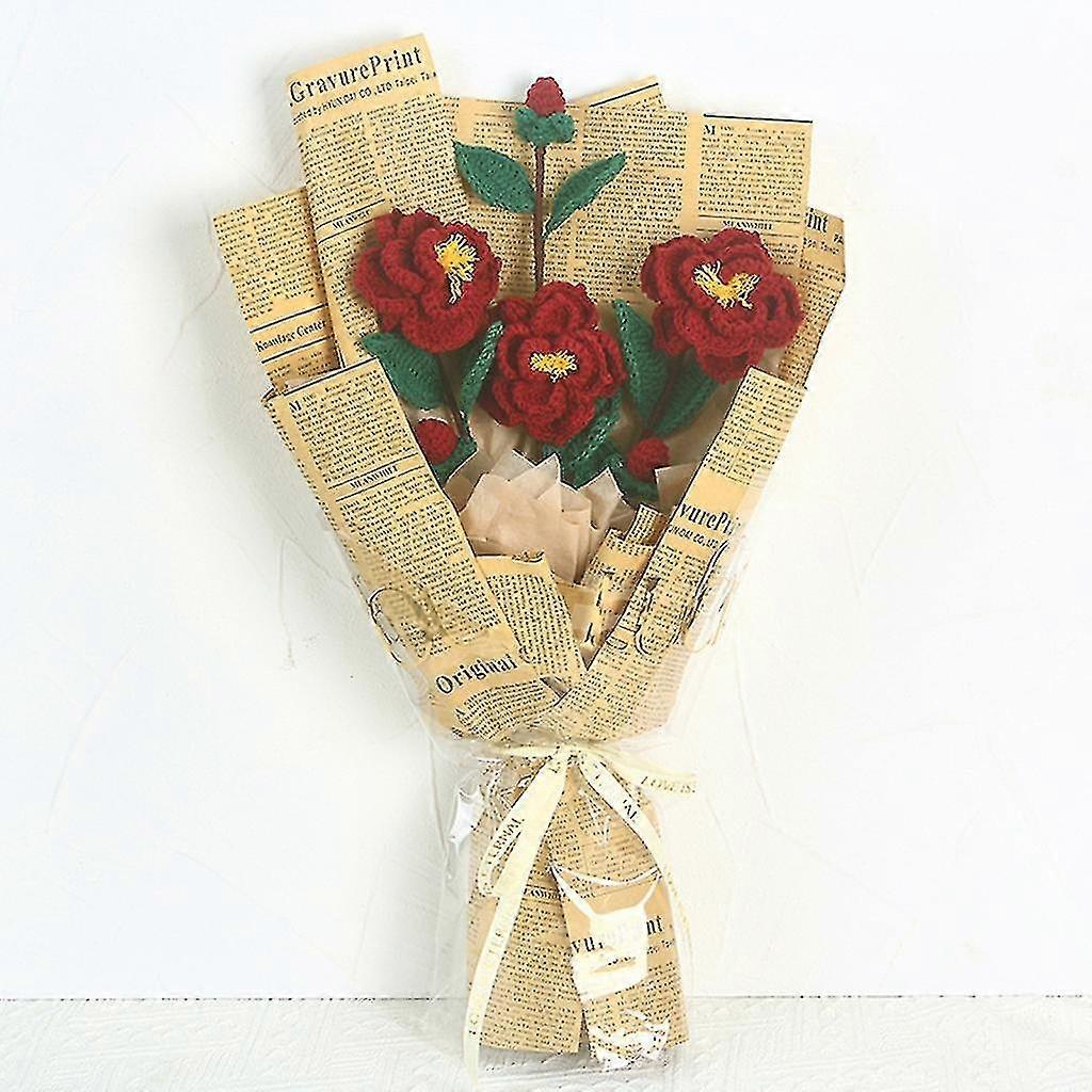 Hand-knitted Camellia Flower Finished Crochet Flower For Valentines Mother Day