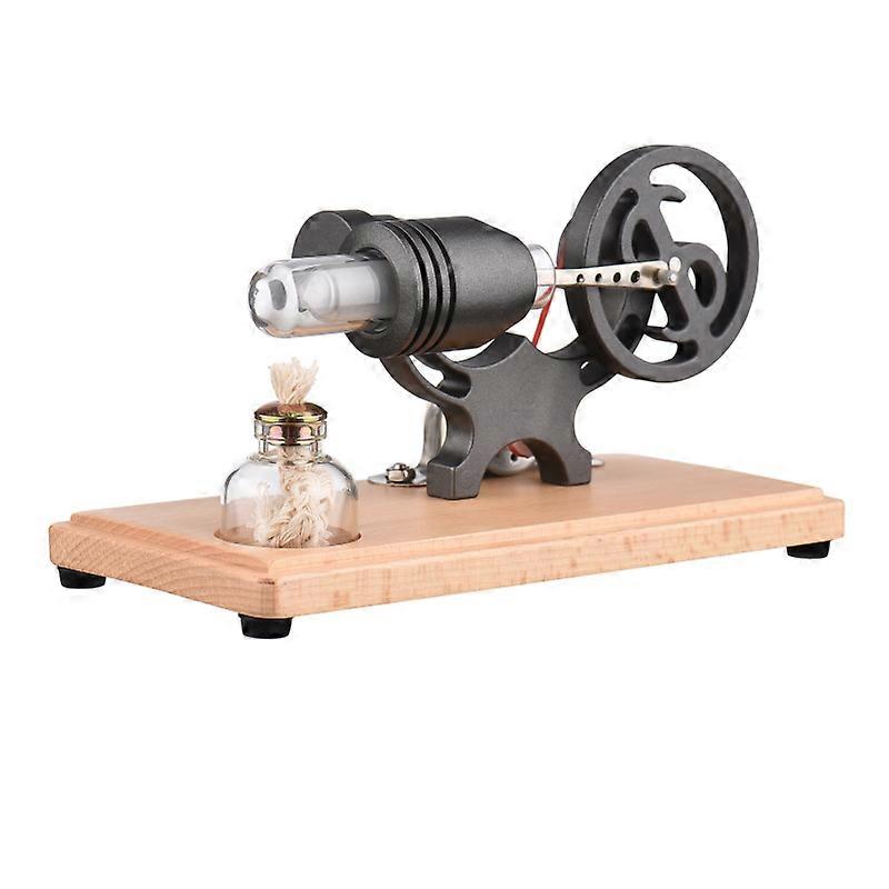 Hot Air Stirling Engine Electricity Generator Motor Model with LED Light Dollar Flywheel Design Science Experiment with Wooden Base DIY Education Toy