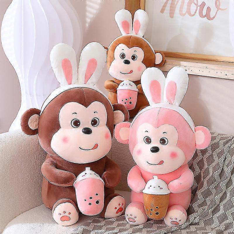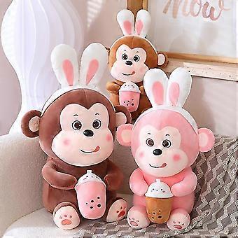Stuffed Animal Creative Pillow Kawaii Cartoon Bubble Tea Monkey Plush Toy Cup Milk Tea Boba Plushie Doll Birthday Gifts