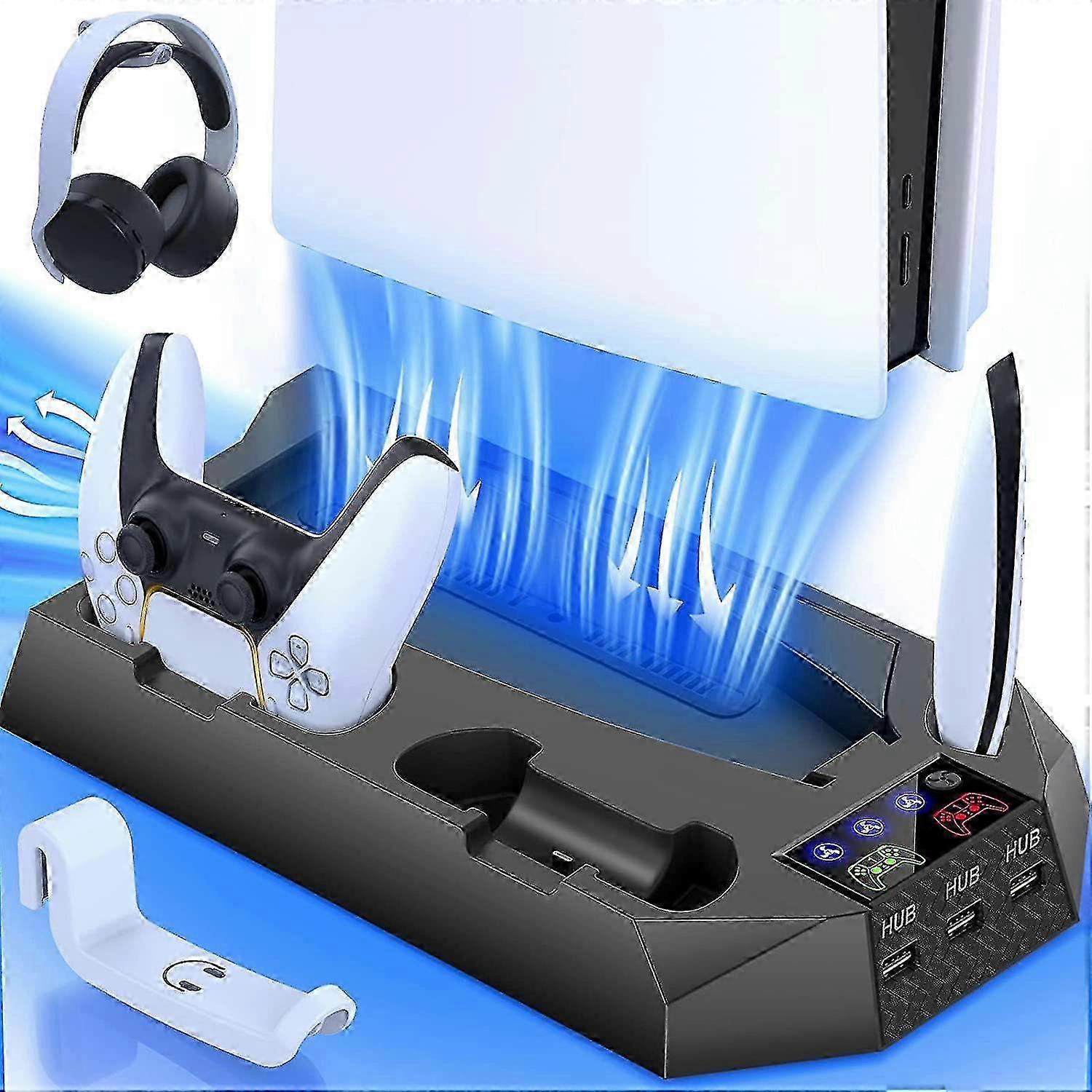 PS5/PS5 Slim Cooling Station with Controller Charging Station for Playstation 5 Slim&Standard Disc/Digital Console, PS5 Slim Stand Cooler Accessories