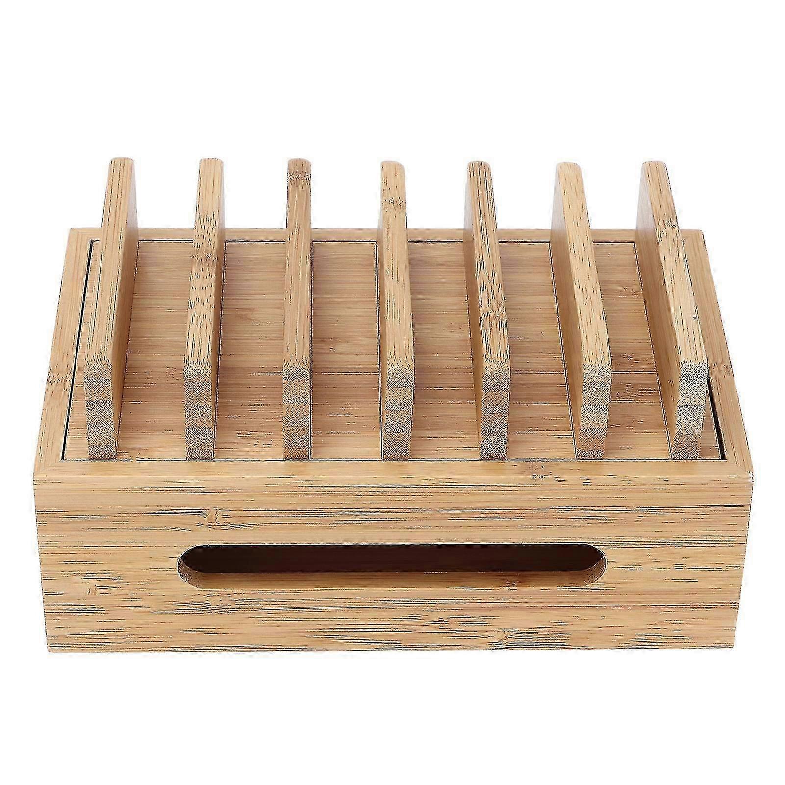 Bamboo Charging Station, Cell Phone Docking Stations for Multi Device, Portable Tablet Computer Organizer Storage Box for Home Office