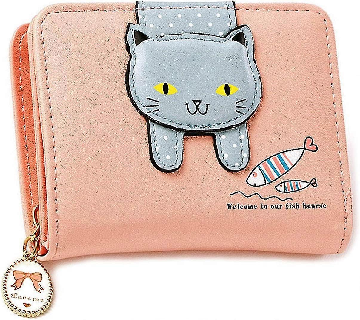 Women's Cartoon Cat Wallet, Cat Decoration Zip Purse, Leather Small Purse with Ziplight green