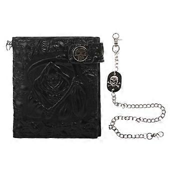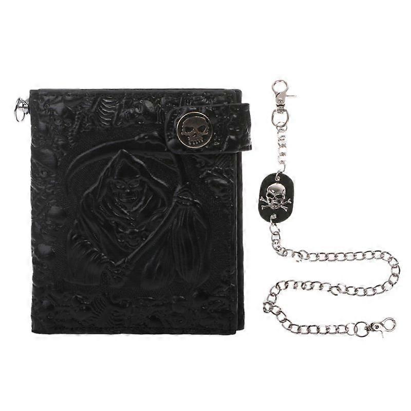 Vintage Skull Leather Wallet With Anti Theft Chain for Men