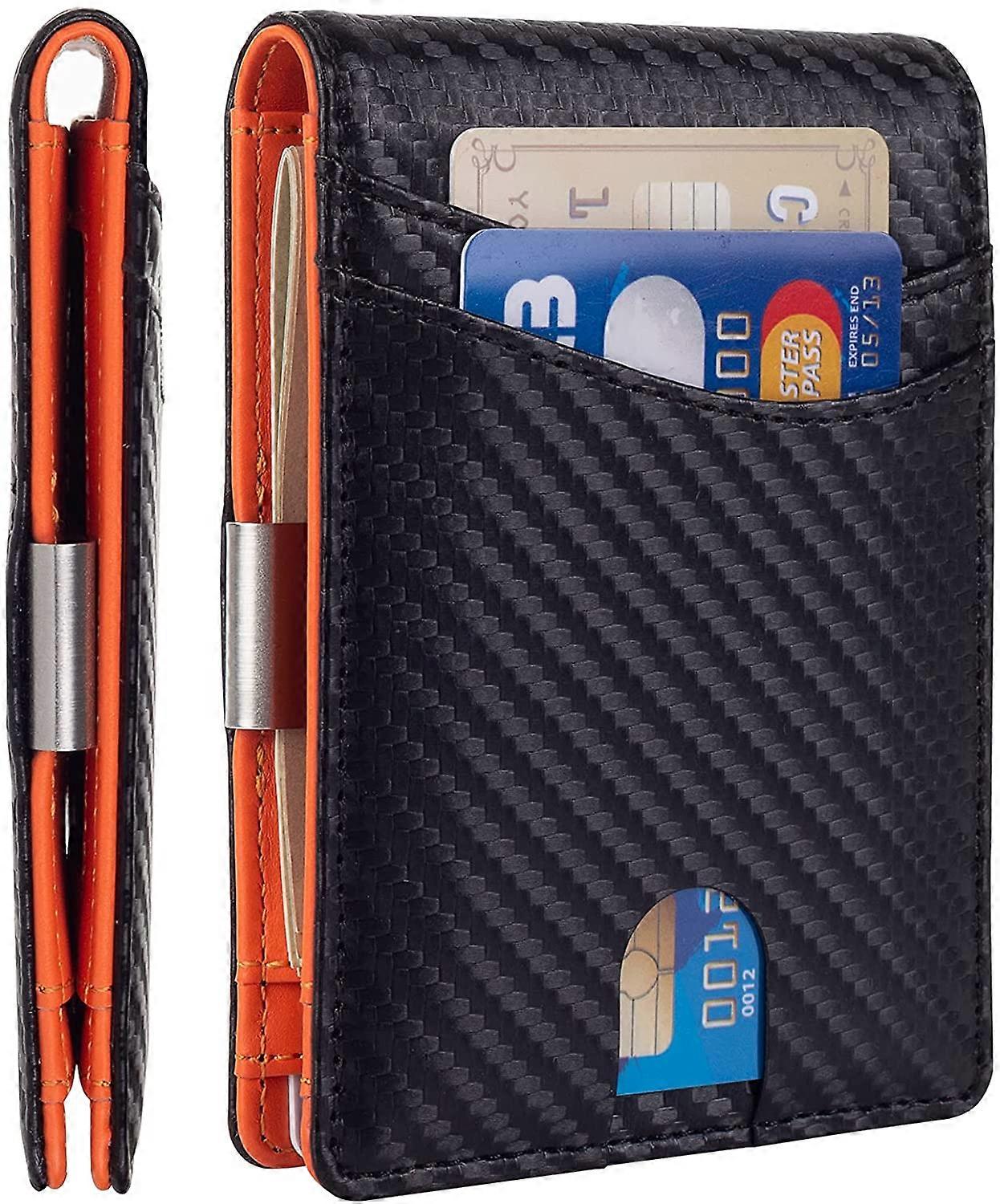 Minimalist Slim Wallet for Men, Premium Leather Wallet with Money Clip, RFID Blocking Front Pocket Stylish Bifold Wallet (Black & Orange)