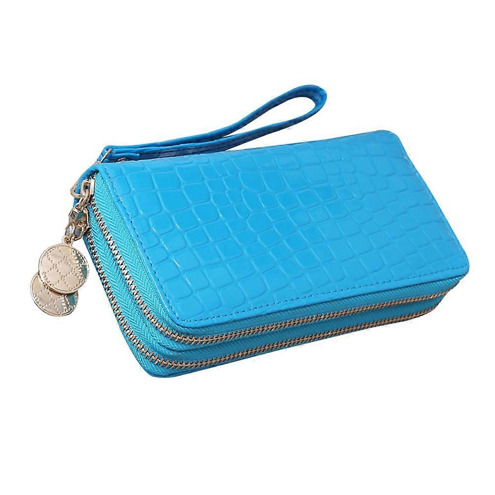 Slim Wallet Women Patent Leather Cash Purse Blue Zipper Closure 7.3×3.9×1.6in 1Set