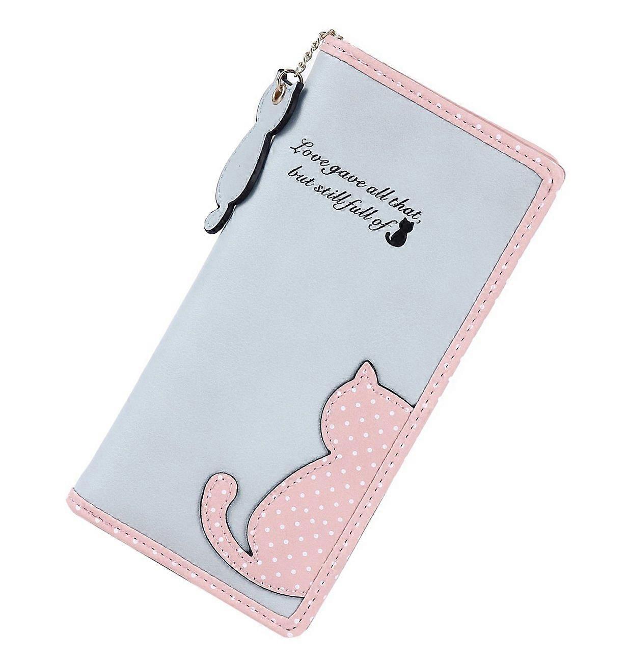 Purse Women's Wallet Long Purse with Zipper and Snap Button Chic Handbag Purse Cat Money Bag Large for Women and Girls(Light Blue)