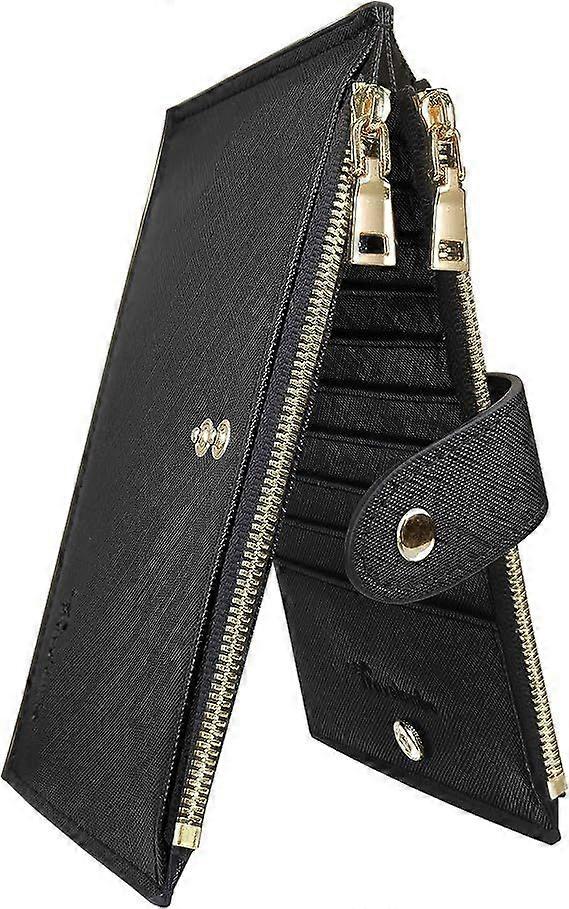 Womens Wallet RFID Blocking Bifold Multi Card Case Wallet with Zipper Pocket - Black