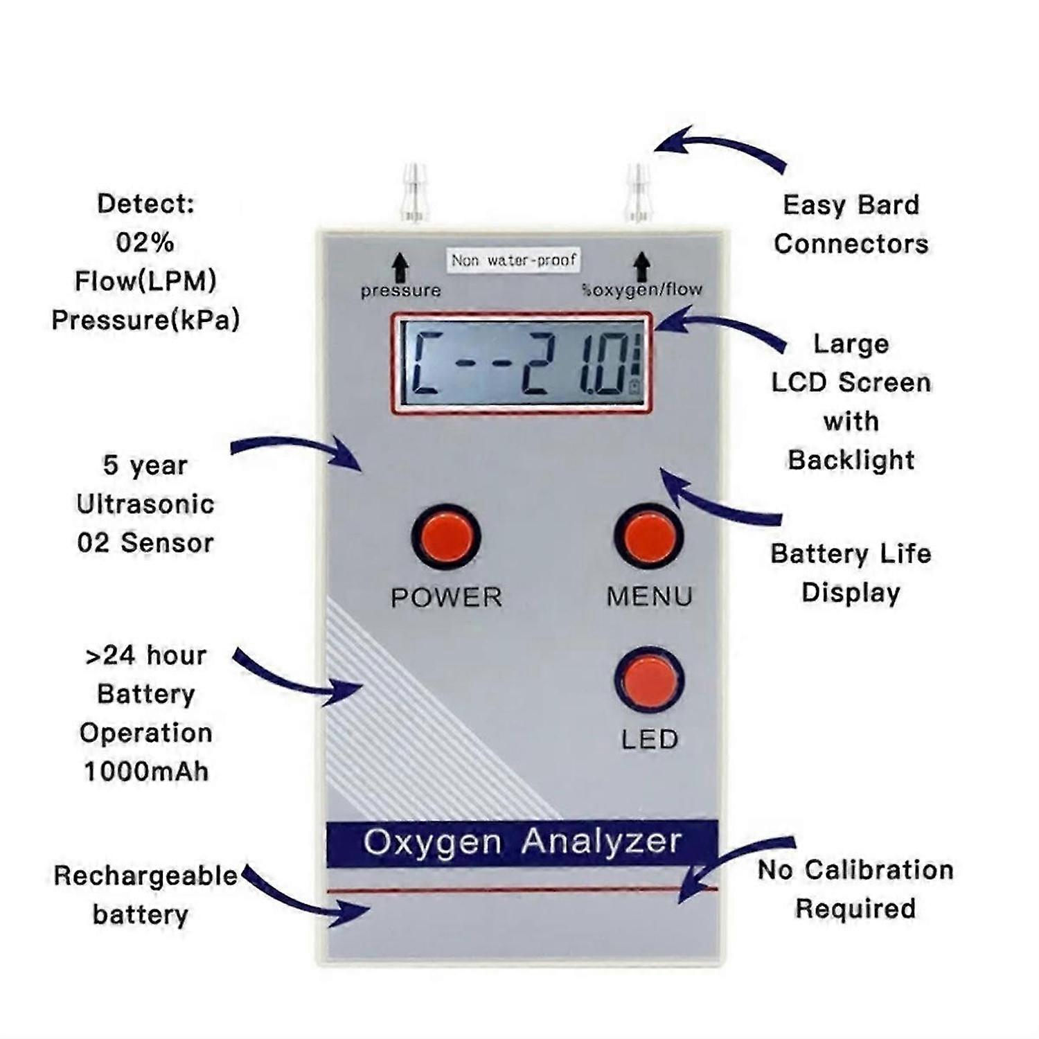 Oxygen Analyzer Professional Portable O2 Oxygen Concentration Meter Detector 21%-100% O2 Meter Gas Detector EU Plug
