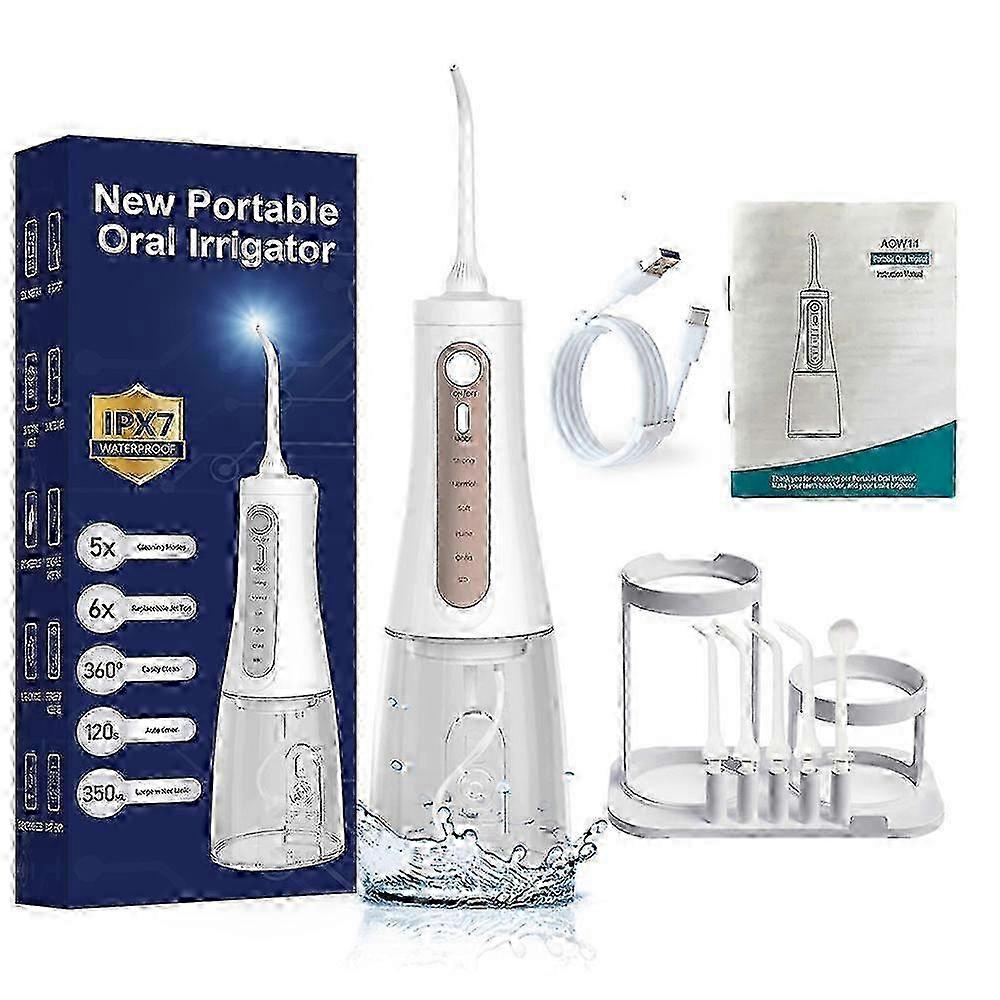 Portable Tooth Flosser Electric Oral Cleaning De-Stoning-White + Storage Stand