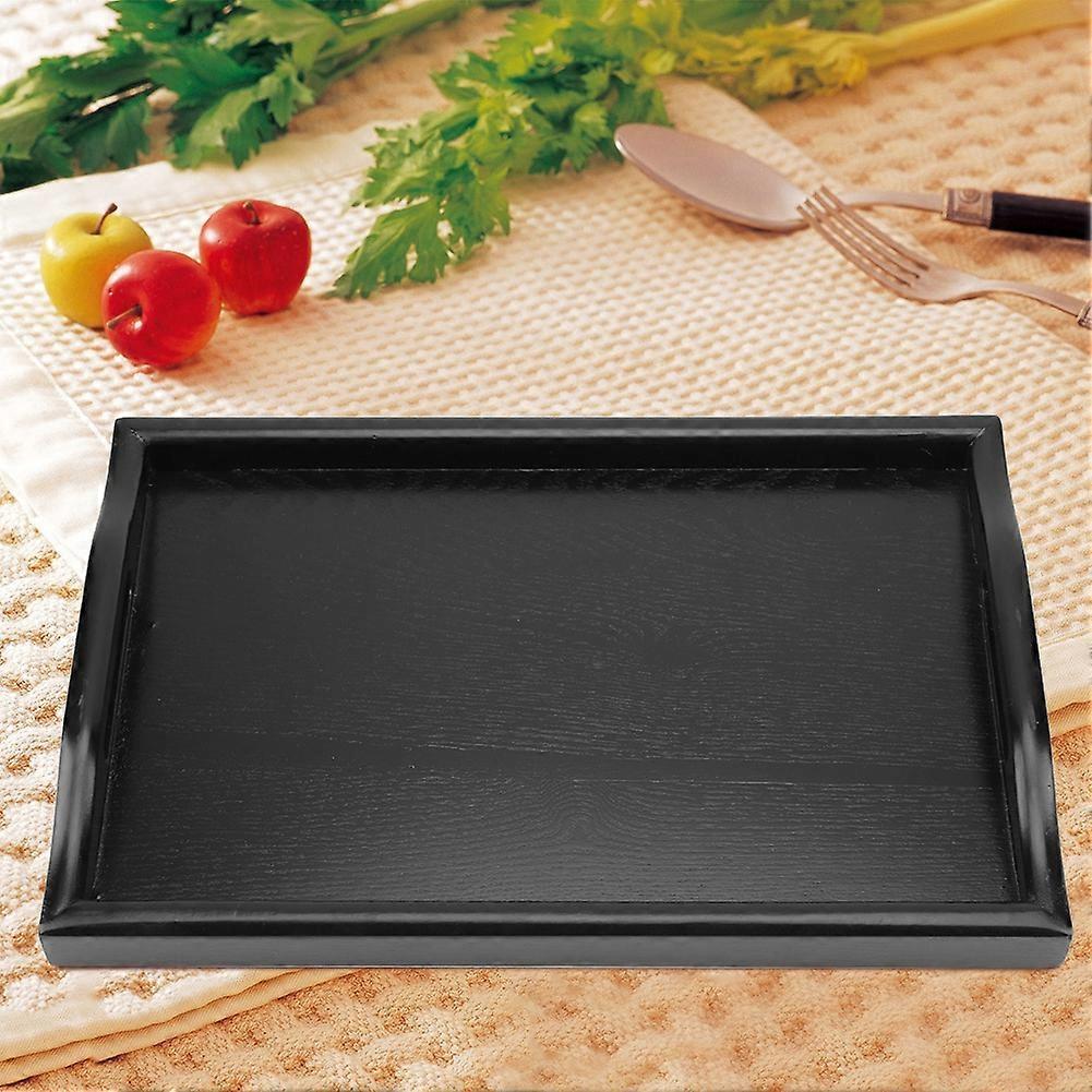 Portable Binaural Rectangle Shape Solid Wood Tea Coffee Snack Food Serving Tray Plate (Black)