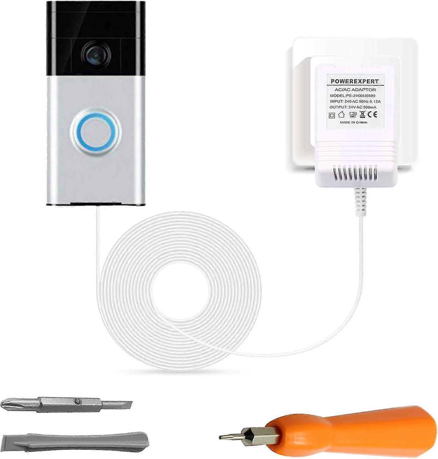 Doorbell Transformer, 24v/500ma Supply Power Adapter With Doorbell Screwdriver Compatible With Video Doorbell, 8m (315") Cable (Black)