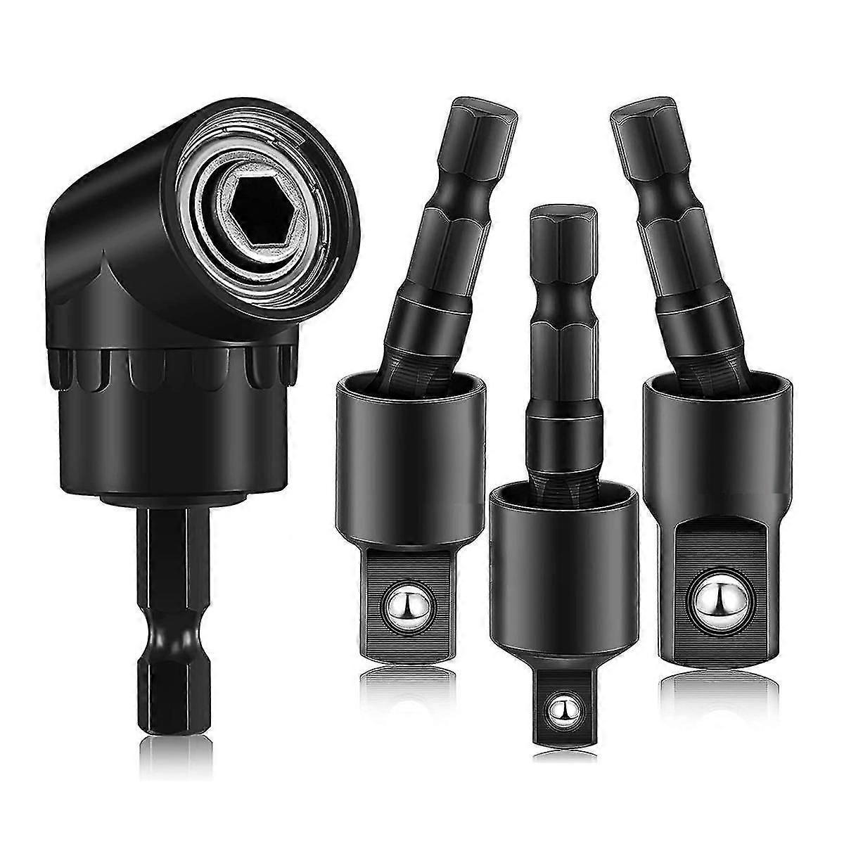 Right Angle Drill Adaptor,4-in-1 Impact Drill Bit Extension,360 Rotatable 1/4 3/8 1/2in Impact Gra