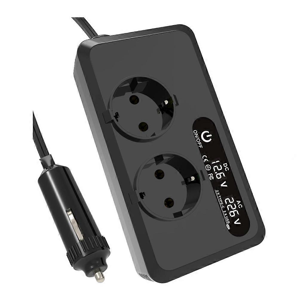 200W Car Inverter DC 12V to 230V AC Power Inverters USB Ports Charger Adapter Car Plug Converter with LED Screen EU Plug