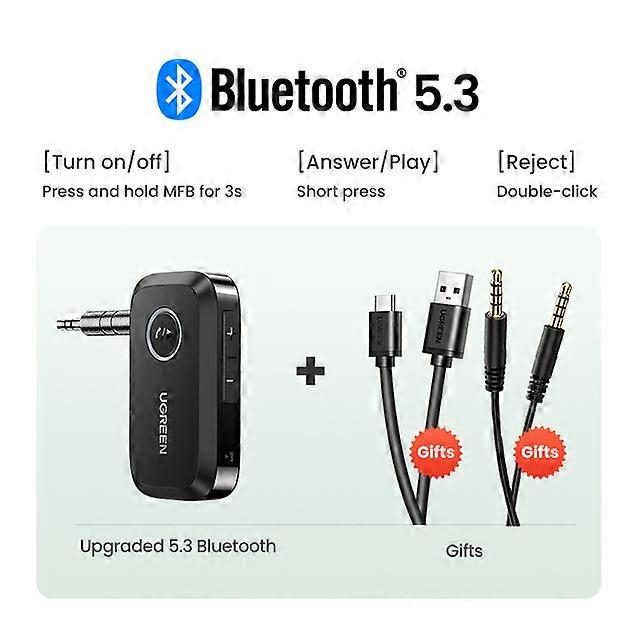 Bluetooth Car Receiver Adapter 3.5mm AUX Jacks for Car Speakers Audio Music Receiver Hands Free Bluetooth 5.3 Adapter