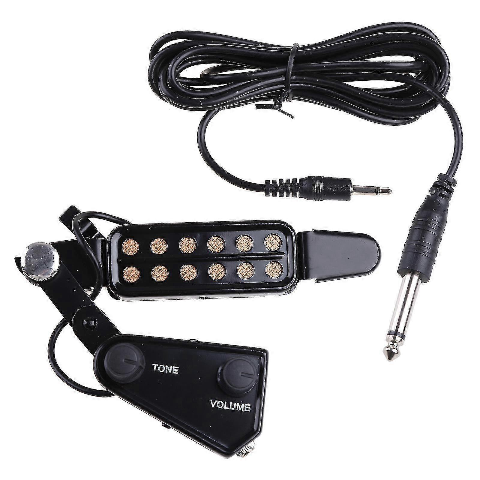 Features:Wide frequency response,low noise,accurately pickup sound of musical instrument.Enhance the sound of your musical instruments.Easy simple, convenience,quality beyond your imagination.It has electromagnetic field characteristics and converts it into electronic signals according to mechanical vibration. Turn the acoustic guitar into an electric guitar at the fastest speed.Easy installation, insert the guitar sound hole and quickly lock it in place, then you can connect the audio input to a standard 6.35mm connector.It is harmonious, let the music goes under your fingers control. It is wonderful pickup will fit most guitar as a direct replacement.Mini appearance, with black metal material. It is perfect for most acoustic guitars. Package Includes:1x Guitar Pickup Specifications:Material:IronSize:Approx.22x5cm/8.66x1.96inchesColor:BlackPower: Don\'for t need battery, powered by guitar amp.Output Line Interface: 6.35mm.Length of connecting cable: for 3m.Application: acoustic guitar pickup, classic guitar pickup note:1.Please allow 1-2cm errors due to manual measurement, make sure that you do not mind before you order. 2.Due to the difference between different monitors, the picture may not reflect the actual color of the item.Thanks for your understandings.
