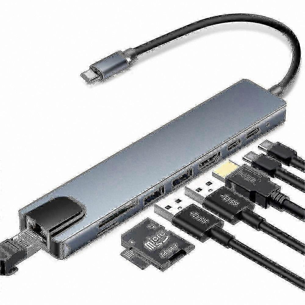 8-in-1 USB-C Hub Adapter with HDMI, USB 3.0, SD/TF Card Reader, LAN Port for Laptop and MacBook Devices