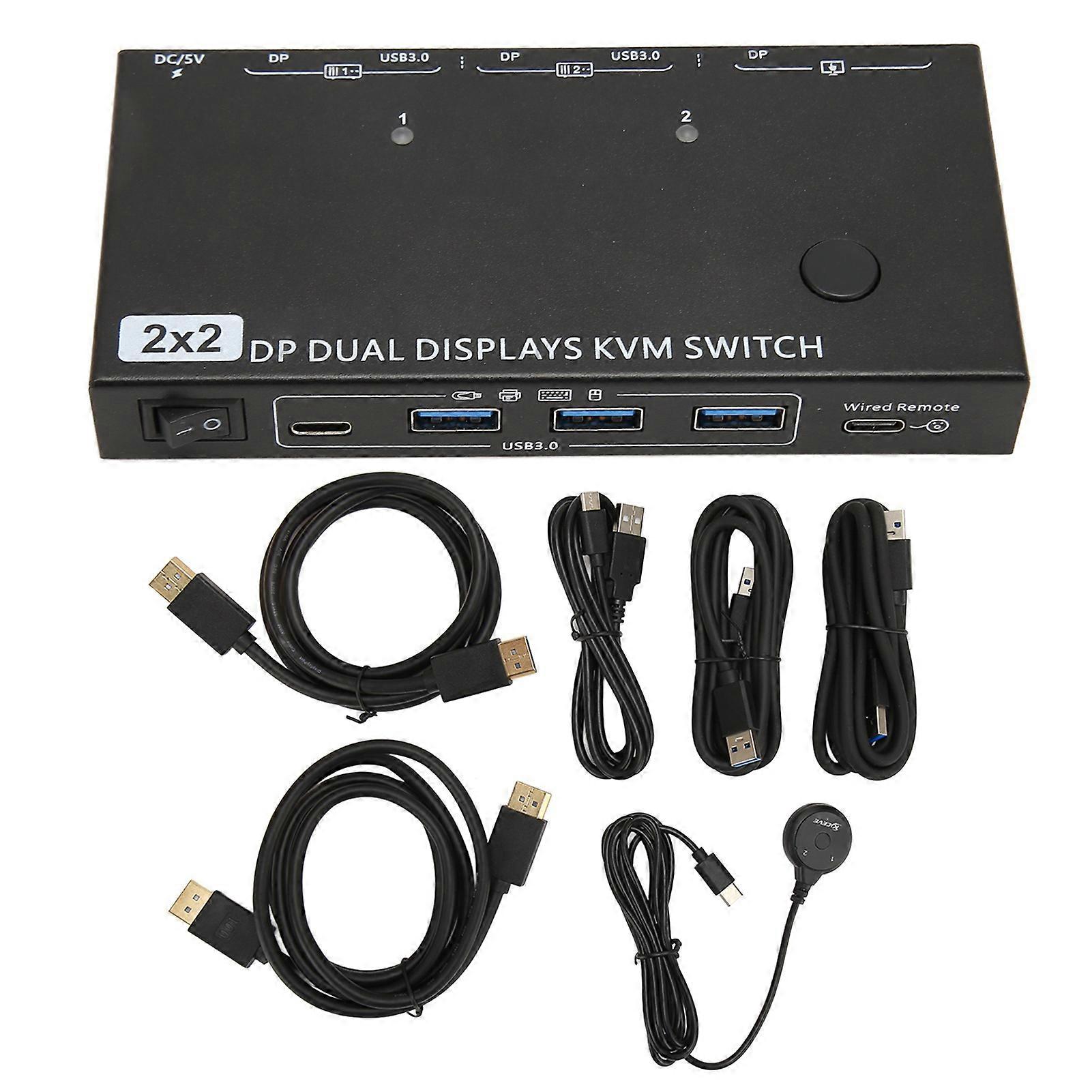 DisplayPort KVM Switch 2 In 2 Out 8K 30Hz 4 USB 3.0 HDCP 2.3 Dual Monitor KVM Switch for Office Meeting Multimedia