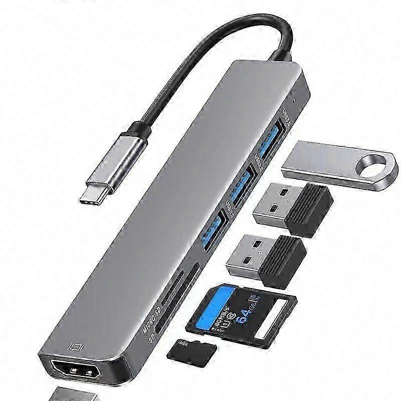 4K HDMI USB-C Adapter, 6-in-1 SD Card Reader Hub, USB-C Multiport Adapter, Gray