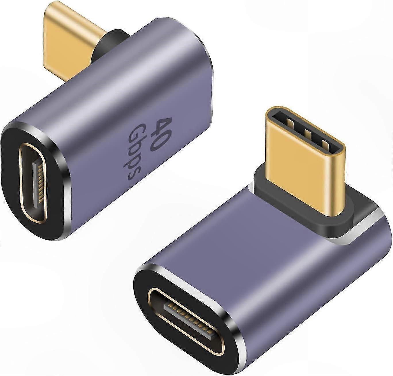USB C 90 Degree Angle Adapter, 100W PD, 40Gbps Data Transfer, 8K@60Hz Video Support, 2-Pack Male to Female Type C Extender Connector