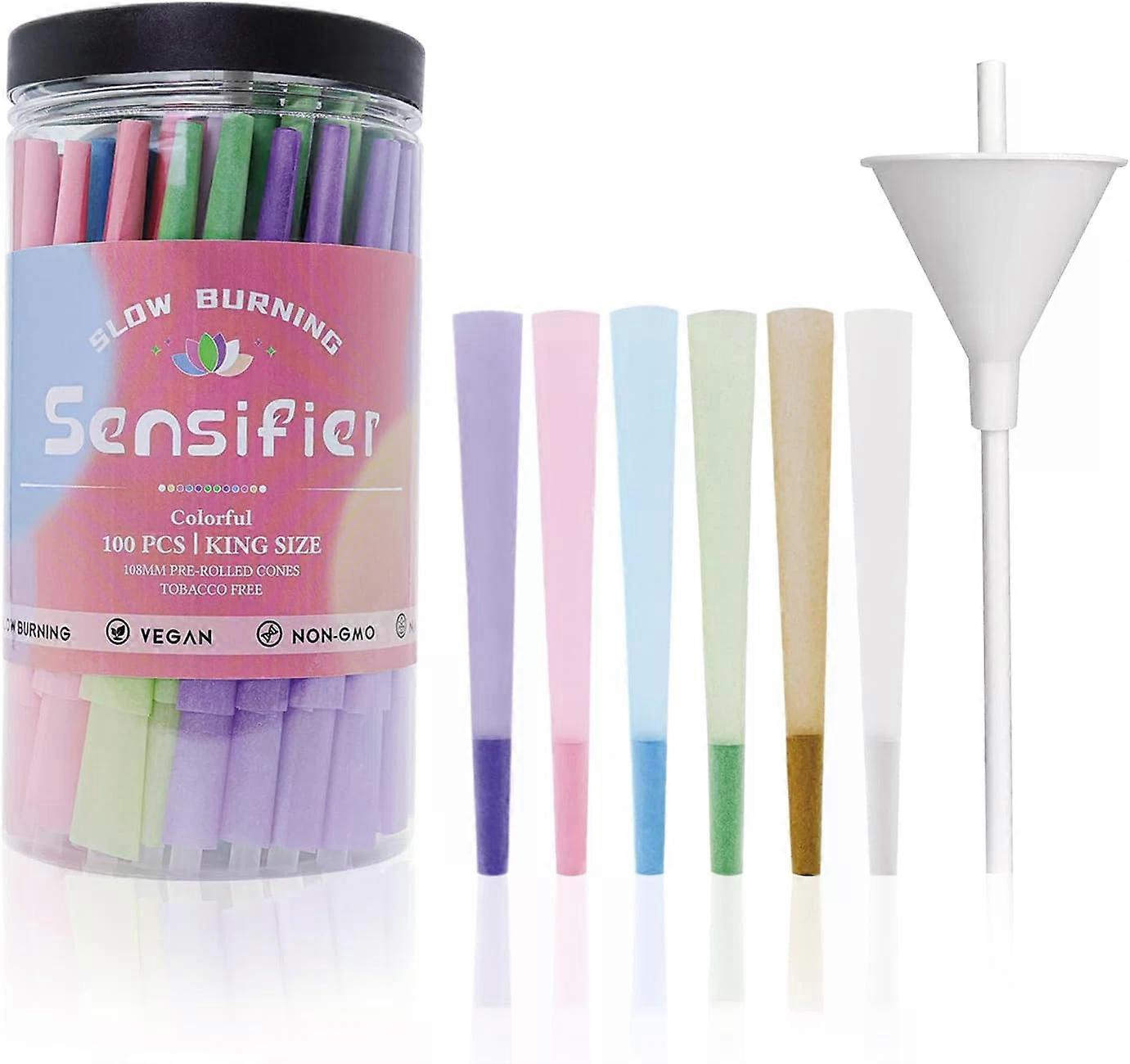 Pre Rolled Cones, 100 Pack Colorful King Size Rolling Paper Cones with Loader