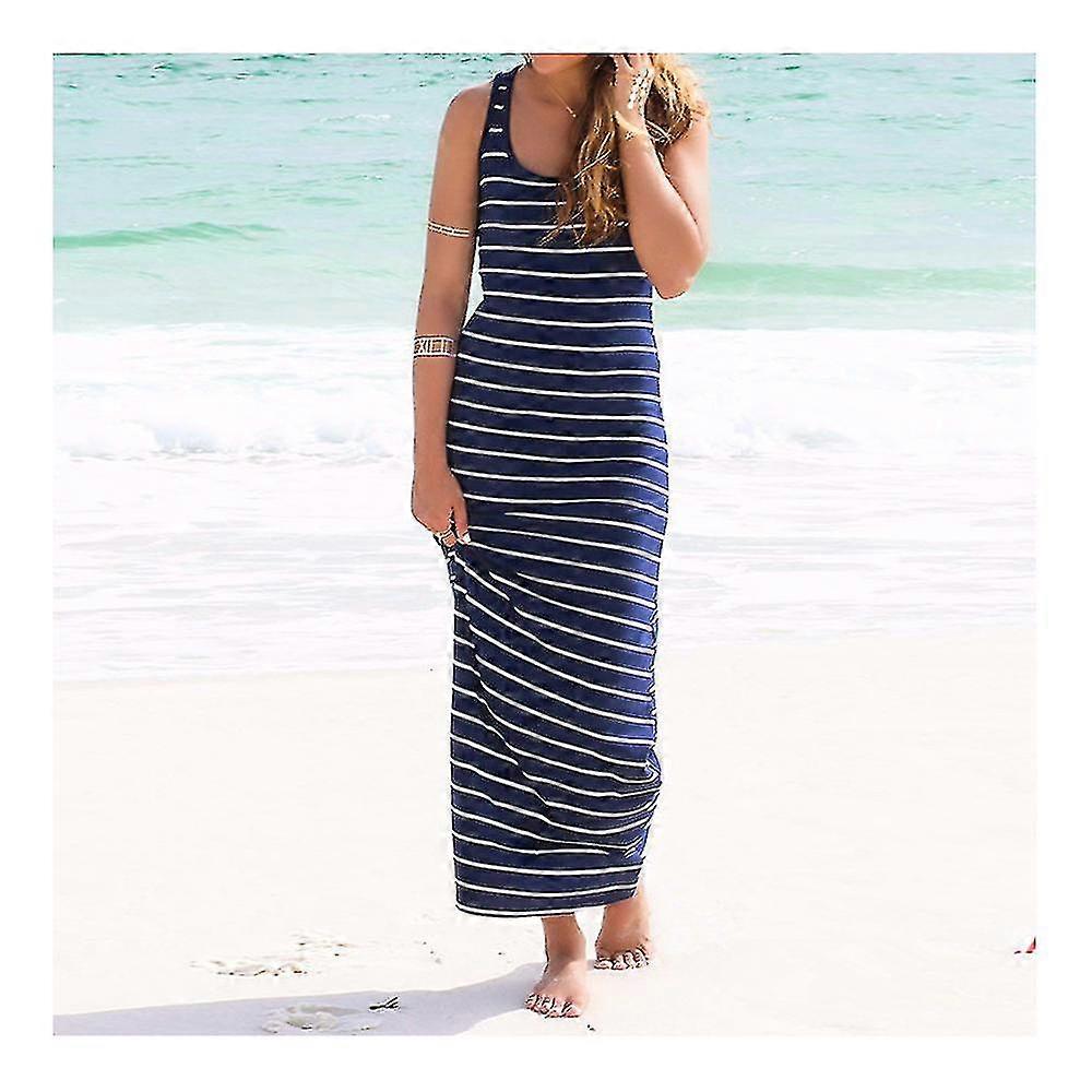 Striped Sleeveless Long Dress Beach Fashion Sexy