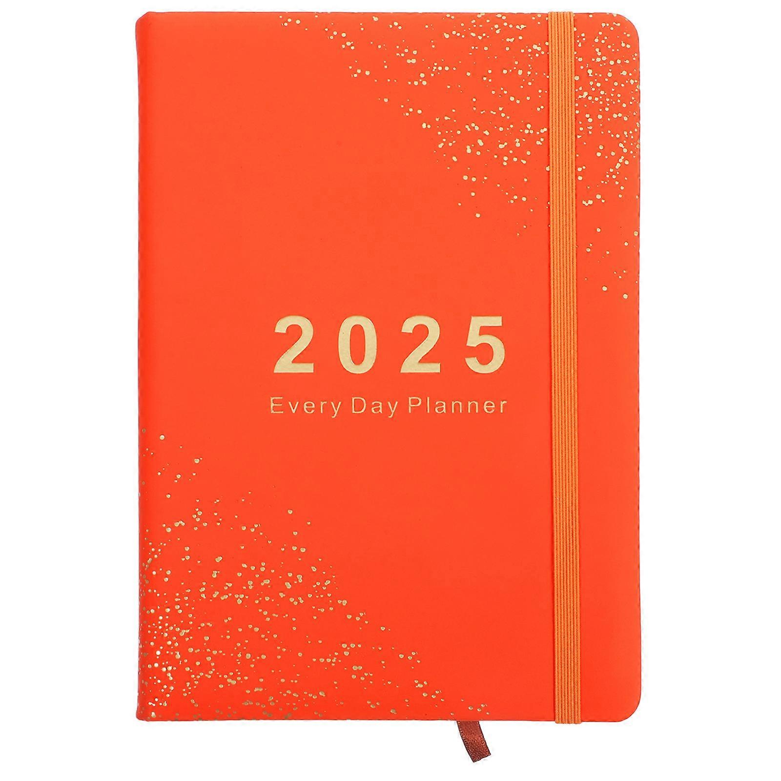 Aesthetic Daily Planner 2025 Schedule Book Rectangular Orange Paper Pu For Office Management 1Pcs