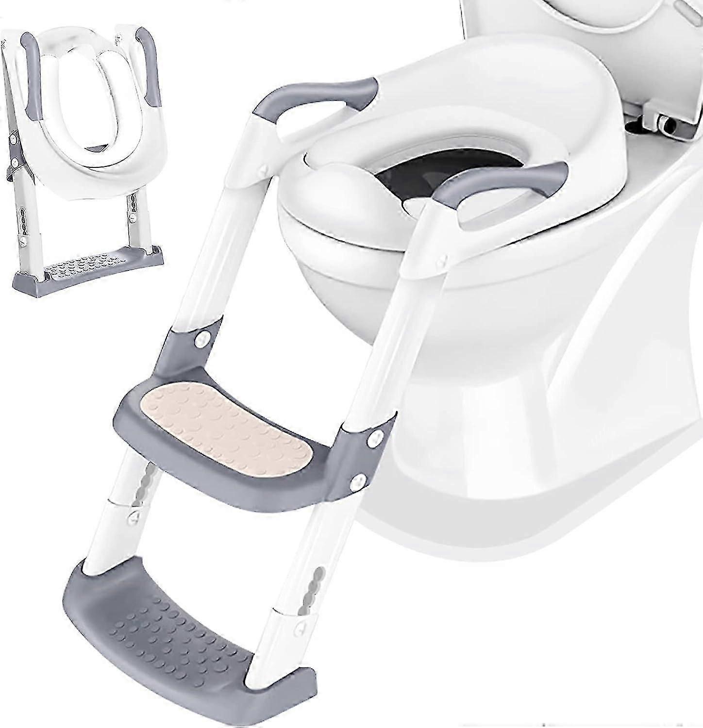 Baby Potty Seat Reducer with Step - Foldable Training Adapter (White)