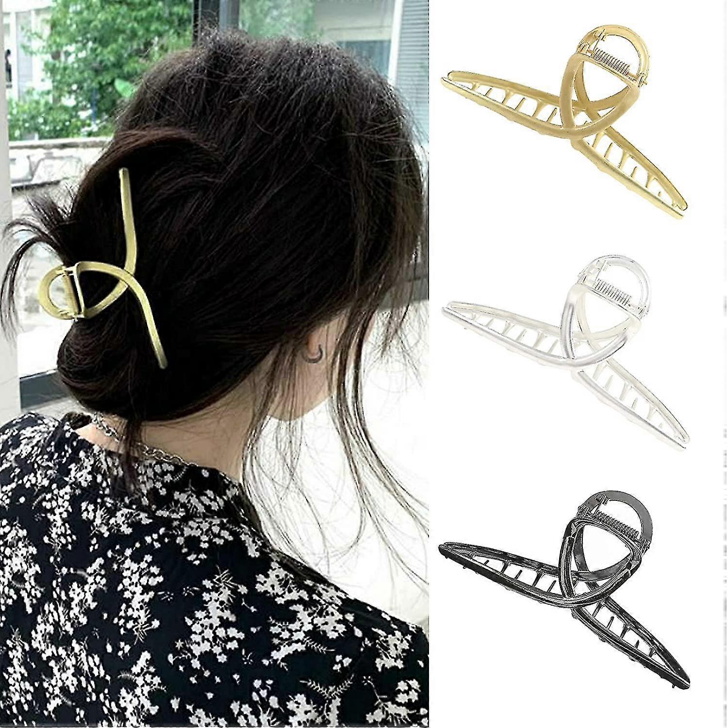 Claw Hair Jaw Clips Barrettes - 3 Pcs No Slip Claw Clip Hair Clamp Grips For Women Girls Jaw Clips Clamp Barrettes(geometric Metal(gray+gold+silver))-