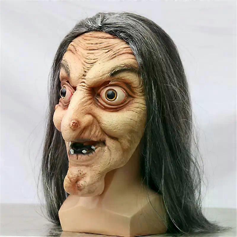 Scary Old Witch Mask Latex with Hair Halloween Fancy Dress Grimace Party Costume Cosplay Masks Props Adult One size