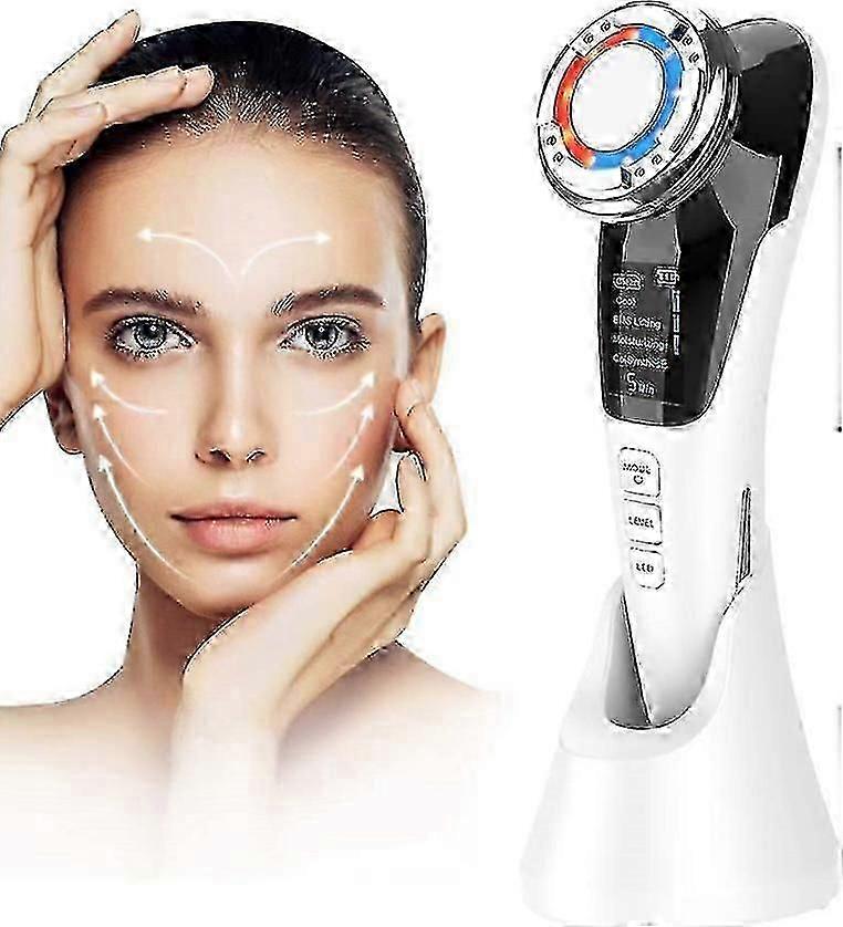 Face Massager, 5in1 Multifunctional Face Roller With ION- and Photon Function Hot / Cold Treatment, Gifts for Women, White