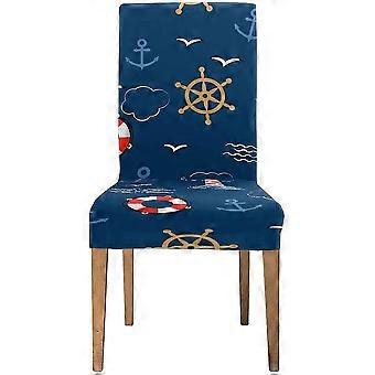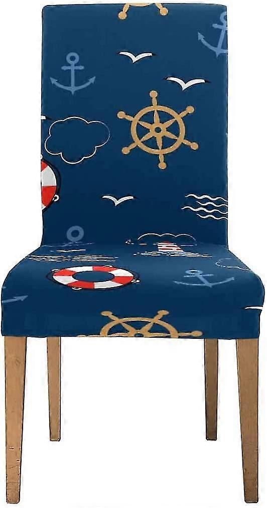 Sea Anchors Helms Lifebuoys Seagulls And Lighthouses Stretch Chair Cover Protector Seat Slipcover Set Of 1