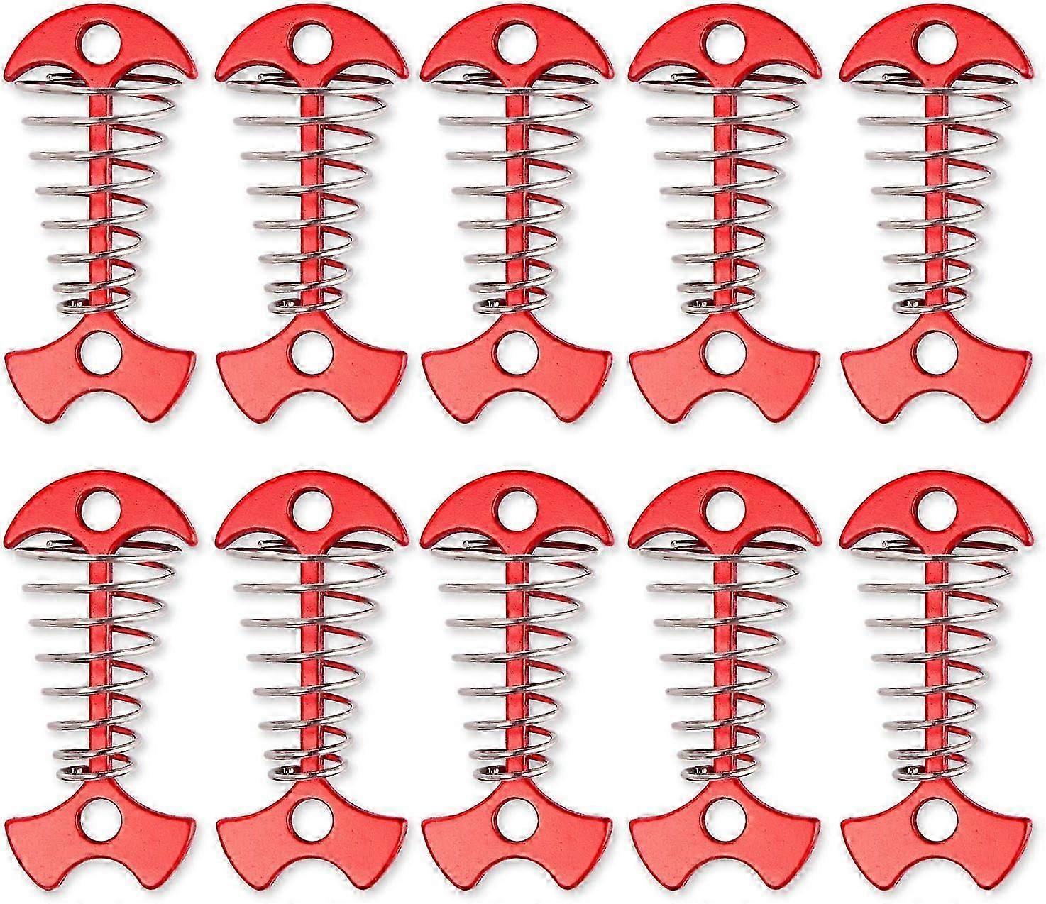 Deck Anchors, Windproof Aluminum Alloy Fishbone Tent Pile with Spring Buckles, Portable Wind Rope Anchors, Camping Tent Nails, 10 Pieces