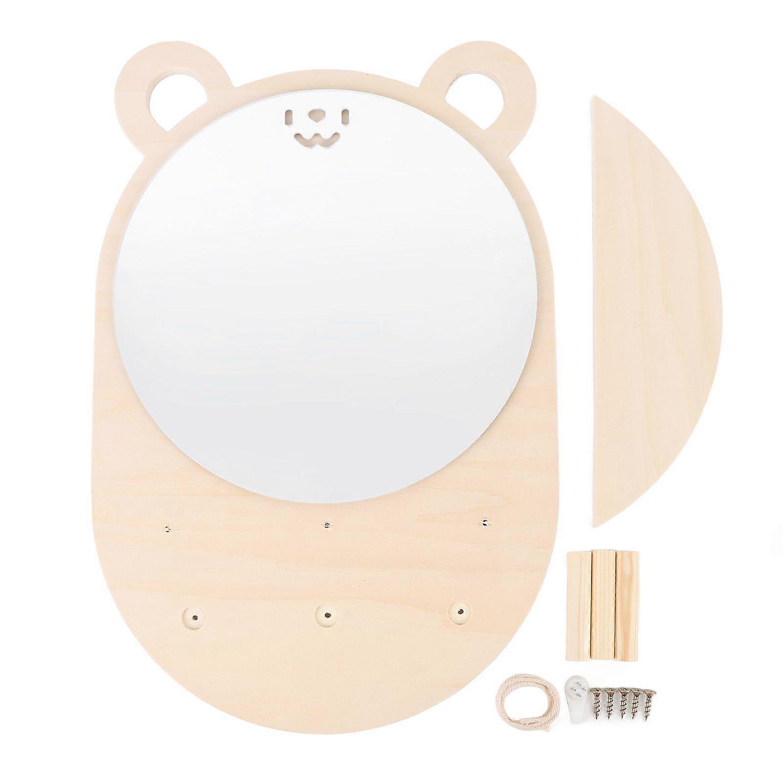 Wooden Wall Mirror Cute Bear Design Simple Decorative Impact Resistant Acrylic Mirror with Hook and Shelf