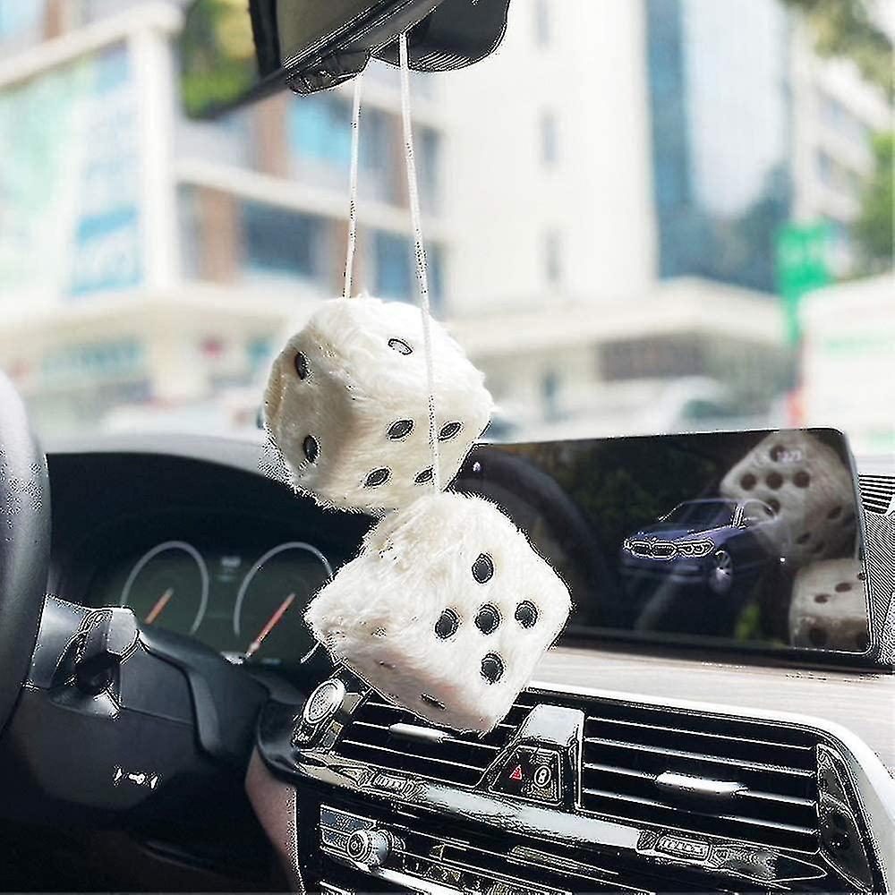 Square Mirror Hanging Couple Fuzzy Plush Dice With Dots For Car Decoration
